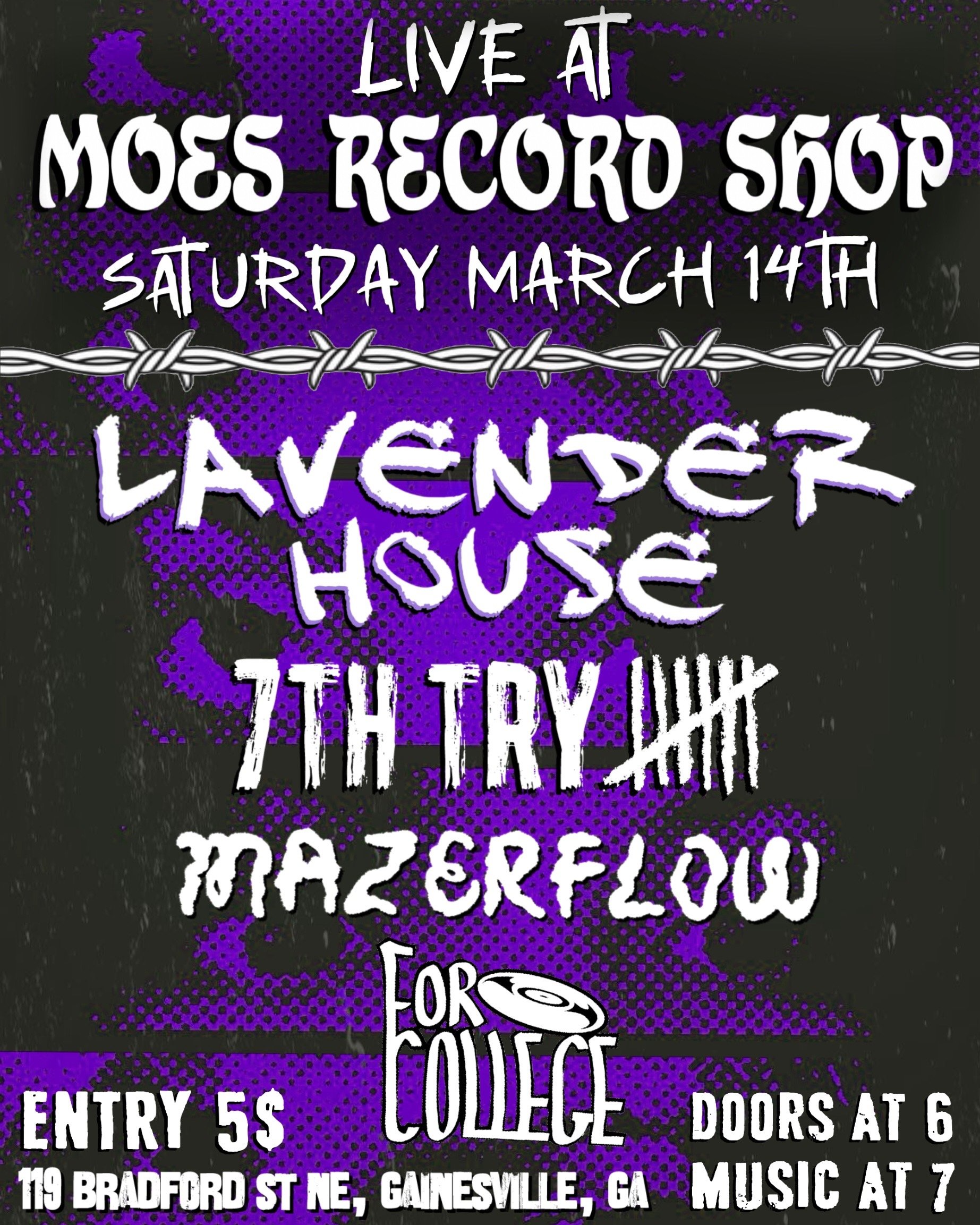 March 14- Lavender House- Moe’s Record Shop/ Gainesville